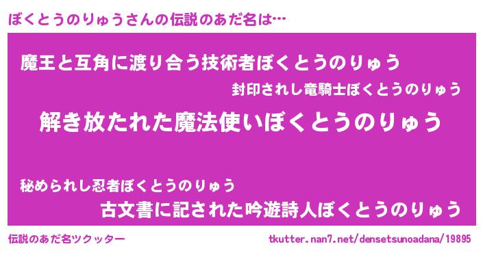 | 意味不明あだ名 | 『とにかく怪しいぼくとうのりゅう』 |