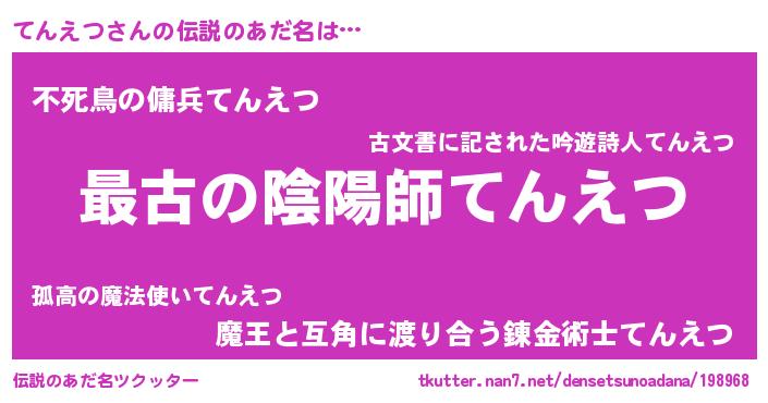 | ファンタジー風あだ名 | 『エターナルテンエツー』『ゼテントゥ』 |