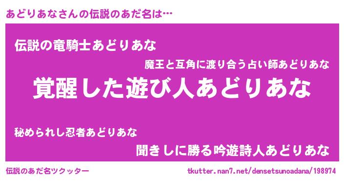 | 女子向けラノベタイトル風あだ名 | 『あどりあな様がみてる』 |