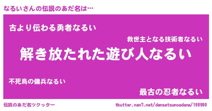 | 意味不明あだ名 | 『とにかく怪しいなるい』『自称なるい』 |