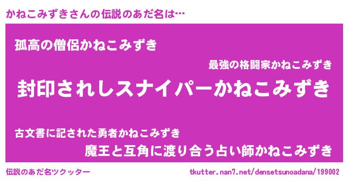 | 胡散臭い通販商品みたいなあだ名 | 『億万長者になれる霊験あらたかなお札…その名も「かねこみずき」』 |