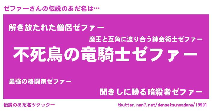 | ファンタジー風あだ名 | 『カークゼフラー』『ゼフフェル』 |