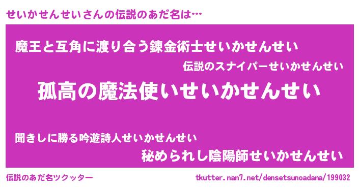 | ピコ太郎風あだ名 | 『セイ三郎』『セセ太郎』『ピセ次郎』 |