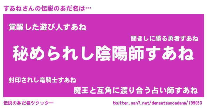 | 意味不明あだ名 | 『しいたけ科すあね属』『自称すあね』 |