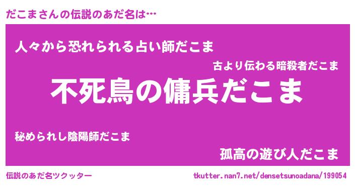 | 料理風あだ名 | 『だこまごはん』『栗とだこまのマフィン』 |