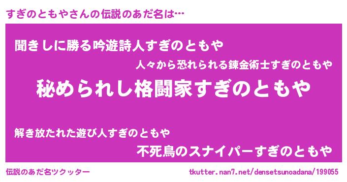 | ヒーロー風カッコイイあだ名 | 『ウルトラ戦士スギノトモヤ』 |