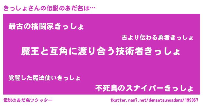 | 意味不明あだ名 | 『住所不定無職きっしょ(9歳)』 |