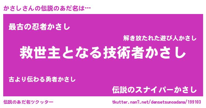 | 男性向けラノベタイトル風あだ名 | 『ノーゲーム・ノーカサシ』 |