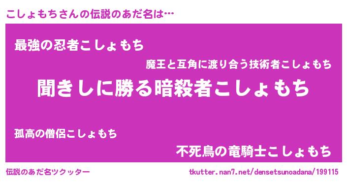 | ヒーロー風カッコイイあだ名 | 『仮面コシダー』『ネオコショモチ』 |