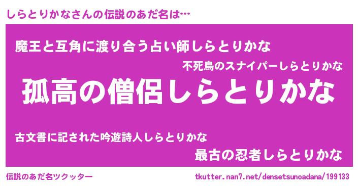 | 意味不明あだ名 | 『とにかく怪しいしらとりかな』 |