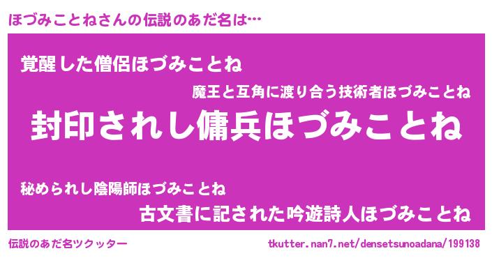 | 胡散臭い通販商品みたいなあだ名 | 『億万長者になれる水晶球…その名も「ほづみことね」』 |