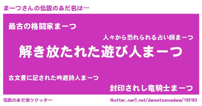 | 意味不明あだ名 | 『とにかく怪しいまーつ』 |