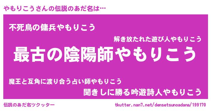 | ファンタジー風あだ名 | 『エターナルヤモリコウー』『ヤモフェル』 |