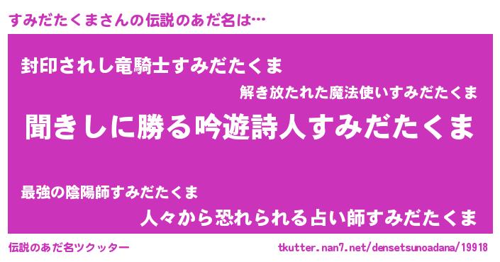| 胡散臭い通販商品みたいなあだ名 | 『ガンによく効く高麗人参…その名も「すみだたくま」』 |
