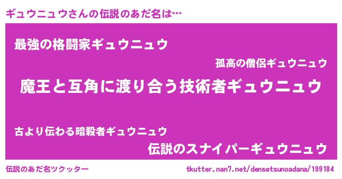 | 意味不明あだ名 | 『自称ギュウニュウ』 |