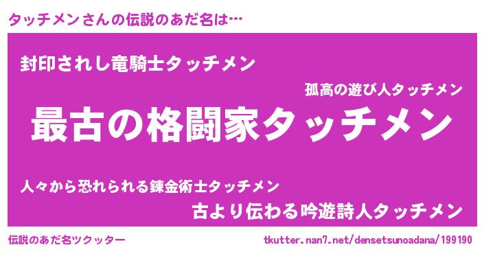 | ファンタジー風あだ名 | 『エターナルタッチメンー』『タッフェル』 |