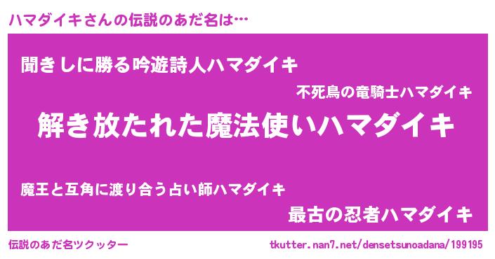 | ポケモン風あだ名 | 『ハマキング』『ヒハマダイキ』 |