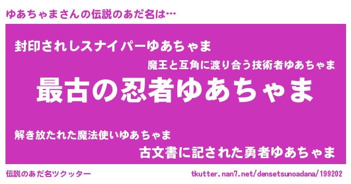 | 肩書あだ名 | 『ゆあちゃま大統領』『ゆあちゃまCEO』 |