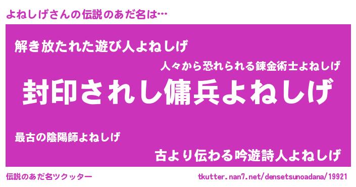 | 胡散臭い通販商品みたいなあだ名 | 『億万長者になれる水晶球…その名も「よねしげ」』 |