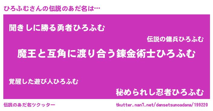 | 意味不明あだ名 | 『住所不定無職ひろふむ(91歳)』 |
