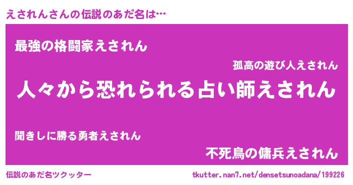 | 欧米人風あだ名 | 『ダニエルえされん』『マイケルえされん』 |