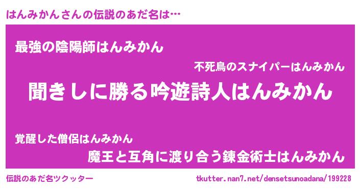 | ヒーロー風カッコイイあだ名 | 『ネオハンミカン』『スーパーハンミカン』 |