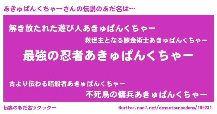| ヒーロー風カッコイイあだ名 | 『ウルトラあきゅぱんくちゃーマン』 |