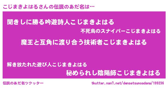 | 女子向けラノベタイトル風あだ名 | 『こじまきよはる恋絵巻』 |