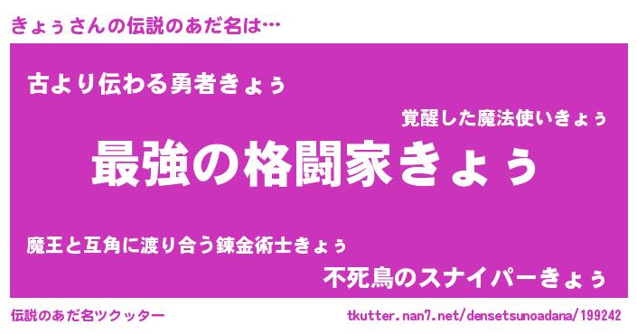 | 意味不明あだ名 | 『住所不定無職きょぅ(1歳)』 |
