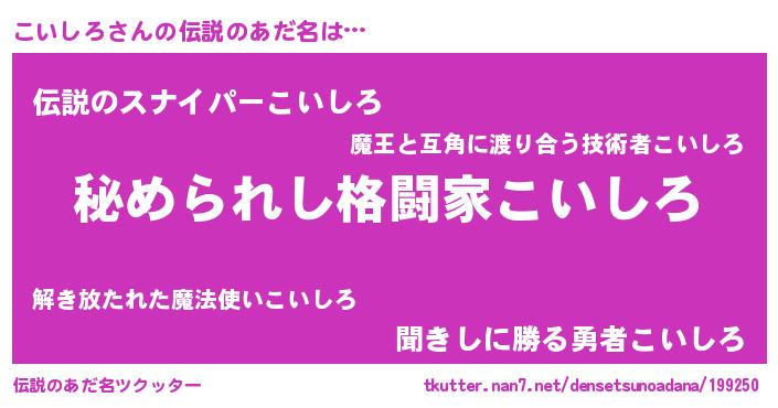 | ファンタジー風あだ名 | 『エターナルコイシロー』『コイフェル』 |