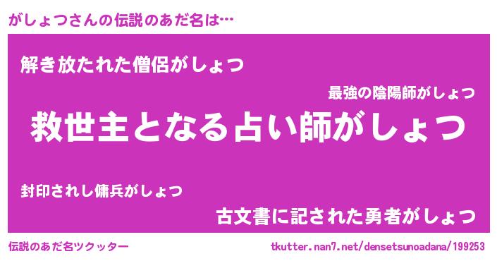 | ヒーロー風カッコイイあだ名 | 『最強戦士ガショツ』『愛の使者がしょつ』 |