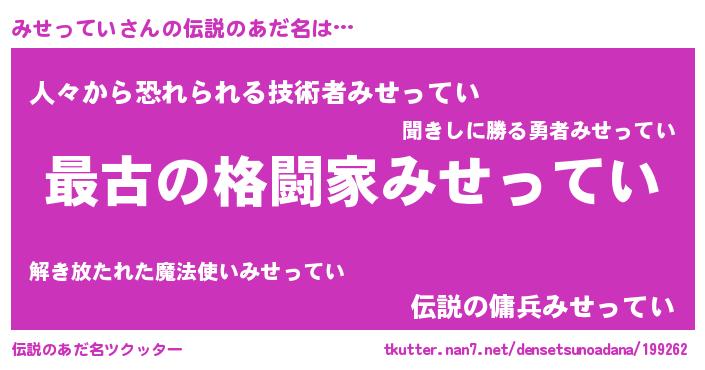 | ファンタジー風あだ名 | 『エターナルミセッテイー』『ミセフェル』 |