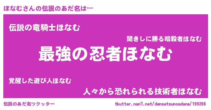 | 男性向けラノベタイトル風あだ名 | 『ほなむ~年齢イコール彼女いない歴の魔法使い~』 |