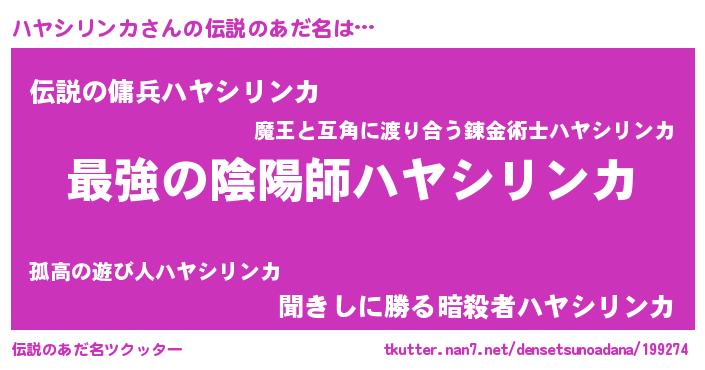 | ファンタジー風あだ名 | 『エターナルハヤシリンカー』 |