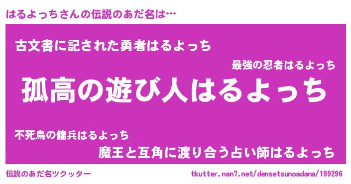 | 意味不明あだ名 | 『とにかく怪しいはるよっち』 |