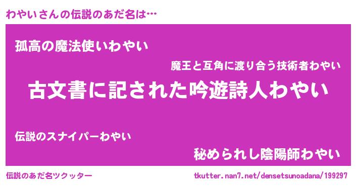 | ヒーロー風カッコイイあだ名 | 『ネオワヤイ』『仮面ワヤダー』 |