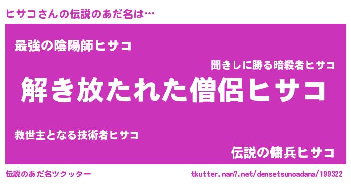 | 意味不明あだ名 | 『とにかく怪しいヒサコ』『自称ヒサコ』 |