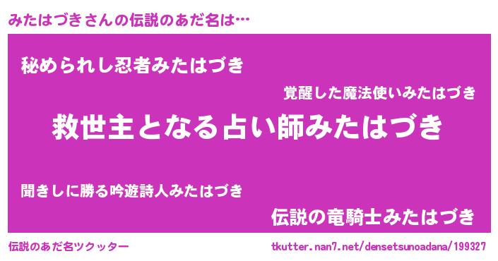 | ヒーロー風カッコイイあだ名 | 『慈愛の使者みたはづき』『幻影騎士ミタ』 |