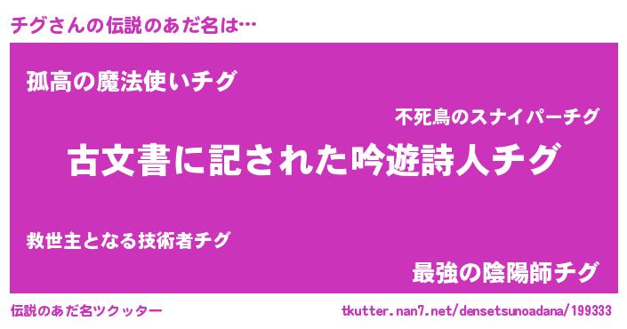 | ヒーロー風カッコイイあだ名 | 『ネオチグ』『幻影騎士チグ』 |