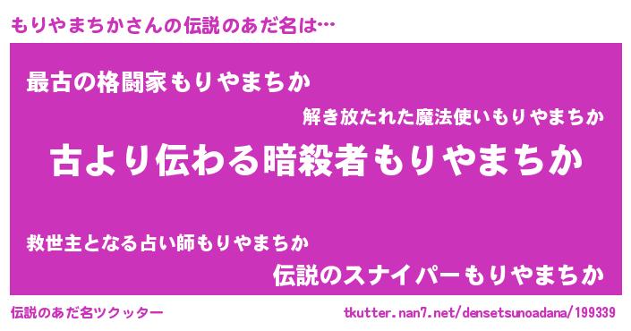 | 胡散臭い通販商品みたいなあだ名 | 『来世でも幸せになれる健康食品…その名も「もりやまちか」』 |