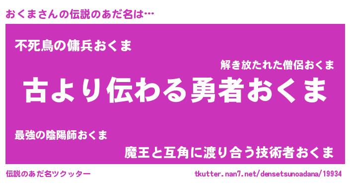 | 意味不明あだ名 | 『たけのこ科おくま属』『永久保存おくま』 |