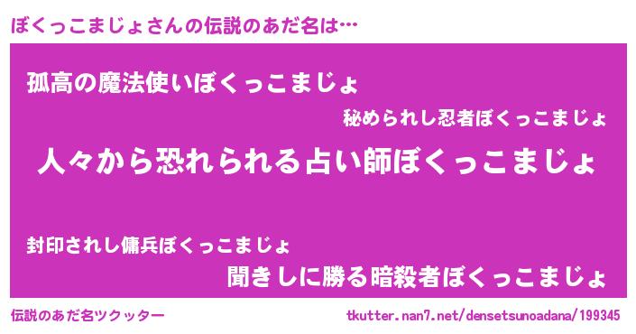 | 意味不明あだ名 | 『住所不定無職ぼくっこまじょ(56歳)』 |