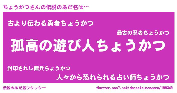 | 意味不明あだ名 | 『とにかく怪しいちょうかつ』 |