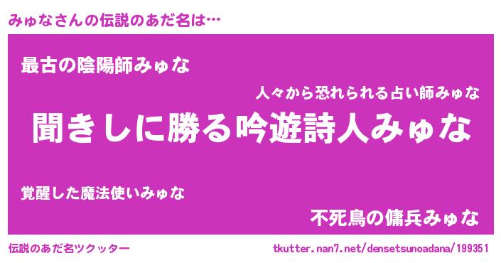 | 意味不明あだ名 | 『永久保存みゅな』『自称みゅな』 |
