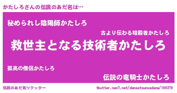 | ヒーロー風カッコイイあだ名 | 『天空の使者かたしろ』『仮面カタダー』 |