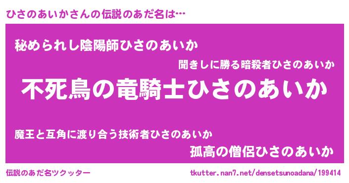 | 意味不明あだ名 | 『住所不定無職ひさのあいか(3歳)』 |