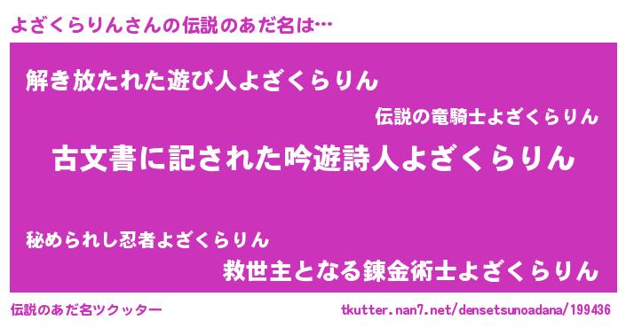 | 意味不明あだ名 | 『住所不定無職よざくらりん(6歳)』 |