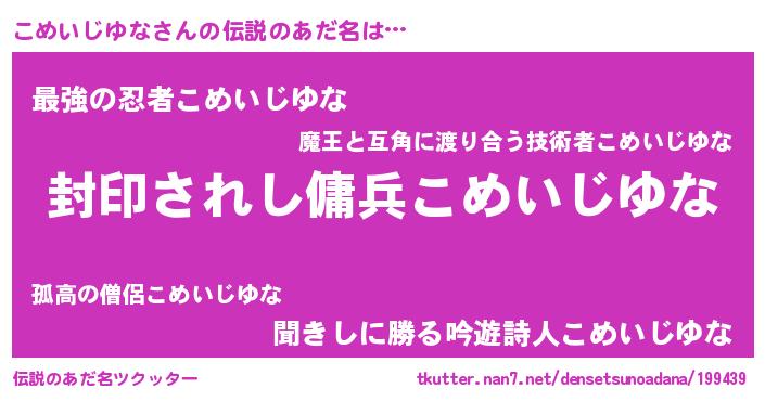 | 意味不明あだ名 | 『自称こめいじゆな』 |