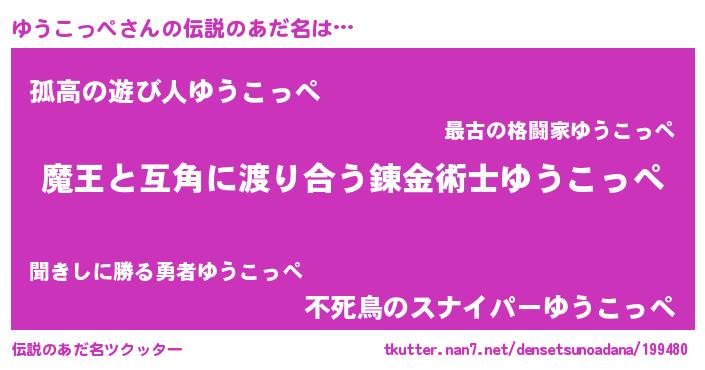 | ポケモン風あだ名 | 『ユックウザ』『ユウゴンZ』 |