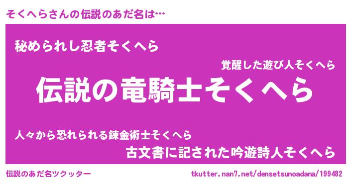 | 男性向けラノベタイトル風あだ名 | 『緋弾のソクヘラ』『そくへらの憂鬱』 |